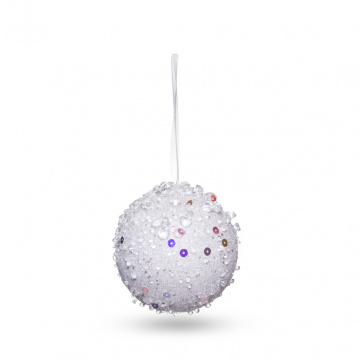 Описание Шар ёлочный белый с пайетками пластик 10 см