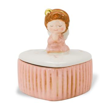 Описание Шкатулка керамика Ангел розовая 12х9,5х10,5см