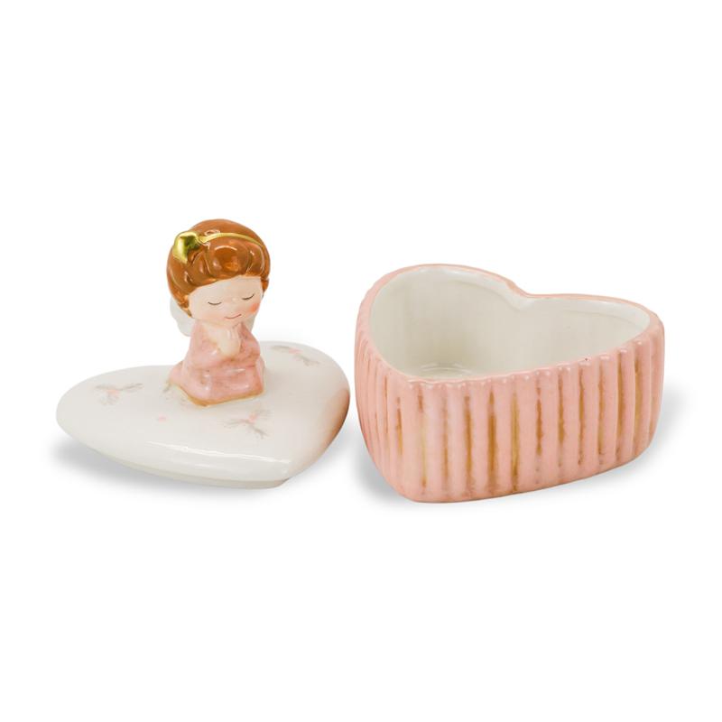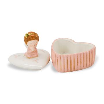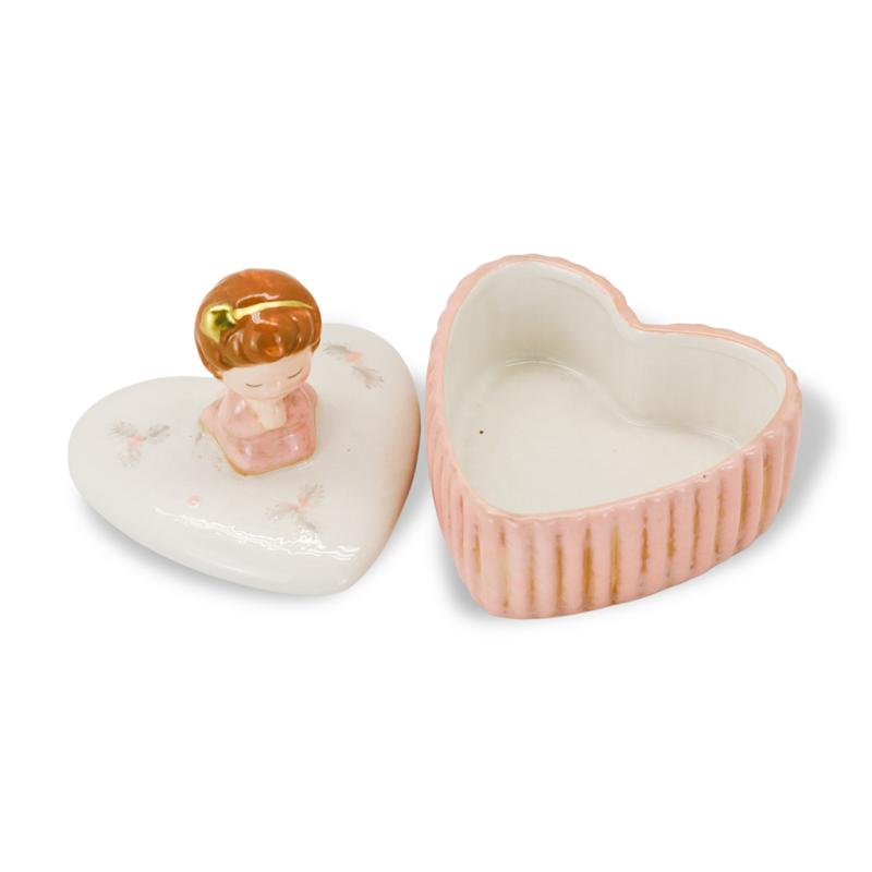 Изящная керамическая шкатулка в форме сердца с милым ангелом на крышке словно создана, чтобы хранить самые трепетные моменты и дорогие сердцу мелочи. Тонкая роспись, нежные розовые оттенки и золотистые акценты придают изделию особое очарование, а сам ангел, сложивший руки в молитве, символизирует заботу, защиту и светлый дух Рождества. Такая шкатулка станет не просто предметом декора, а маленьким хранителем тепла и душевного уюта в вашем доме.