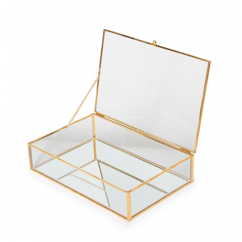 Шкатулка с зеркальным дном стекло латунь 23х15х5,5см