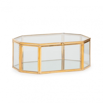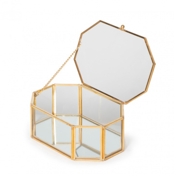 Шкатулка шестигранная с зеркальным дном стекло латунь 15,5х10,5х6см