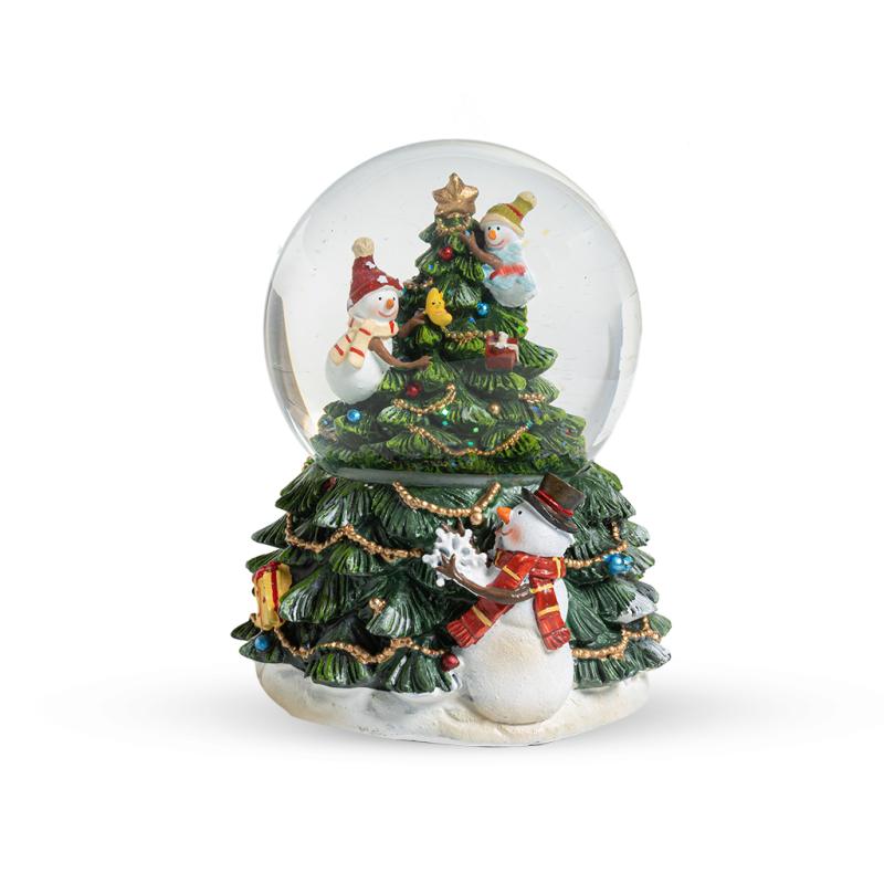 Описание Снежный шар с музыкой Елка со снеговиком 100мм