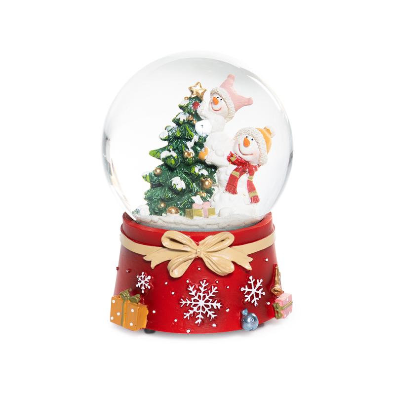 Описание Снежный шар с музыкой Снеговик с елкой 100мм