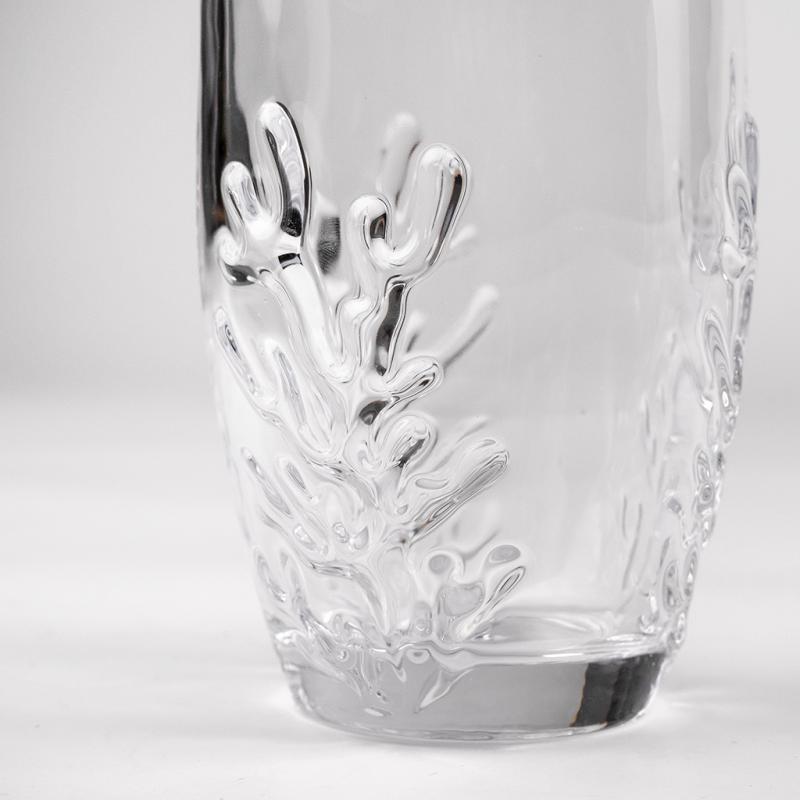 Погрузитесь в атмосферу морской свежести с элегантным стаканом "Кораллы". Стакан выделяется оригинальным рельефным узором, вдохновлённым подводным миром — словно ветви кораллов обвивают стекло, создавая игру света и глубины. Узор не только эстетически привлекателен, но и делает стакан приятным на ощупь.