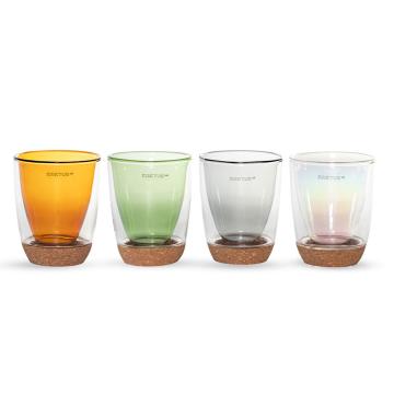 Стакан «Eco» с двойными стенками направит комфорт в новое русло. В посуде подаются самые горячие и холодные напитки без дискомфорта для рук. Гладкая подставка из пробки предотвращает скольжение и бережет мебель от царапин. Цветное напыление внутри стакана привносит разнообразие и яркие акценты в сервировку стола, интерьер кухни. Многофункциональная и объемная посуда практична для ежедневной подачи кофе, чая, лимонада, сока, пива, вина, коктейля и других напитков.