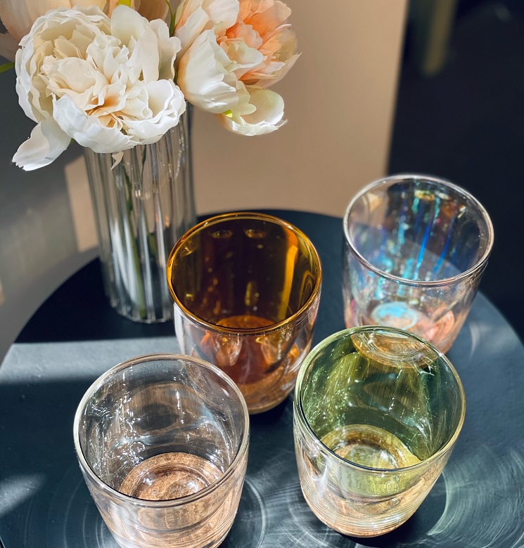 • цветное напыление янтарного оттенка внутри стакана;
