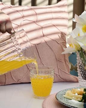 Коллекция посуды «Ice Corn» состоит из стаканов для воды и коктейля, бокала и графина. Изделия из пузырькового стекла подчеркивают элегантность сервировки и праздника. Посуду легко мыть вручную или в посудомоечной машине.