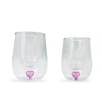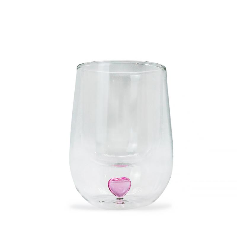 Стеклянный стакан с двойным дном Сердце розовое 250 мл