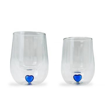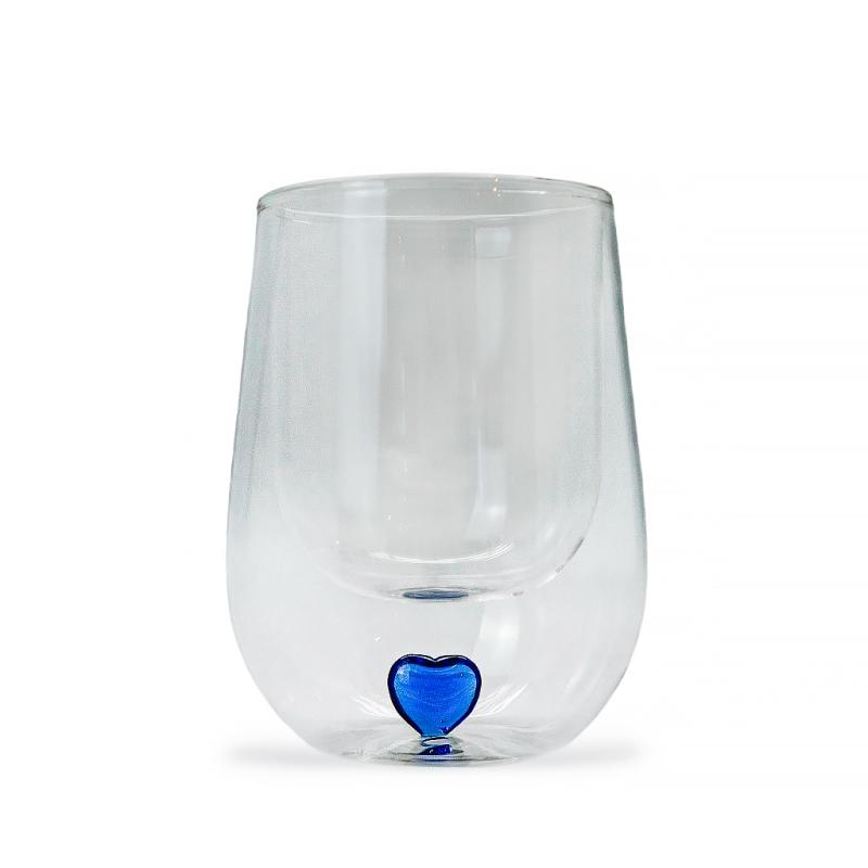 Стеклянный стакан с двойным дном Сердце синее 250 мл