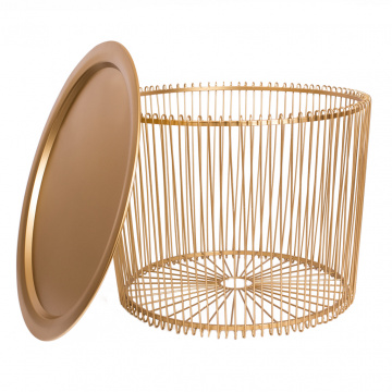 Комфорт и минимализм – вот что радует при взгляде на металлический столик золотого цвета. Гениальная конструкция мебели заслуживает особенного одобрения со стороны практичных хозяек дома. Легким движением руки столик превращается в удобный и вместительный органайзер. Съемная столешница прекрасно справляется с традиционными задачами. Книги, журналы, текстиль и ваза с цветами будут всегда на виду, но внутри декоративного стола. Компактный и легкий столик может кочевать по всей квартире в зависимости от ваших желаний угодить гостям чаепитием на террасе или обескуражить тещу новой покупкой сразу в прихожей. Если вам пришелся по душе оригинальный столик, приобретите комплект из двух размеров. На выбор представлен аналогичный вариант мебели в черном цвете. Ощутите всю прелесть и красоту металлического столика в интерьере гостиной или спальни. Вам гарантированы комфорт и чувство удовлетворения от покупки.