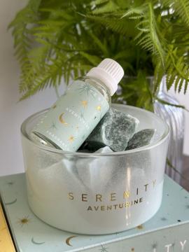 Описание Арома сет Стеклянная чаша с кристаллами Авантюрина и аромамаслом Груша и инжир