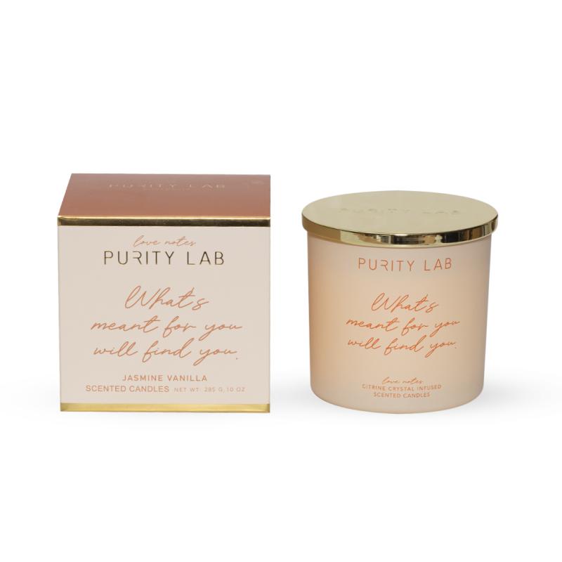Свеча с кристаллами Цитрина аромат Jasmine vanilla в стеклянном подсвечнике 285г