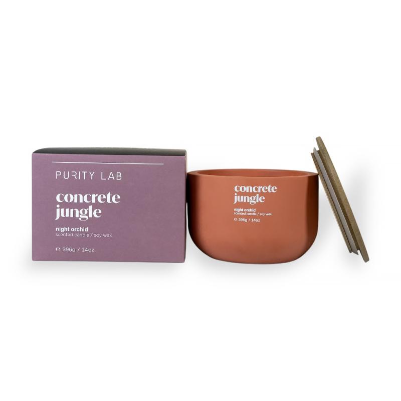 Описание Свеча в керамическом подсвечнике с деревянной крышкой Concrete Jungle Night Orchid 396 гр