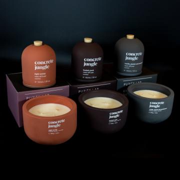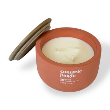 Свеча в керамическом подсвечнике с деревянной крышкой Concrete Jungle Vanila, jasmin and sandalwood