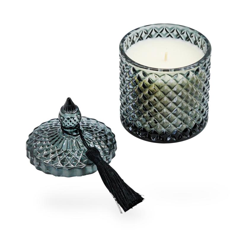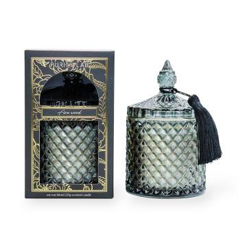 Описание Свеча в стеклянном подсвечнике Fire wood серая 225г
