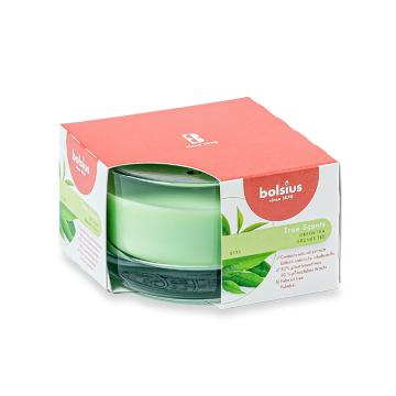 Описание Свеча в стекляном подсвечнике с ароматом Зеленый чай 5х8см