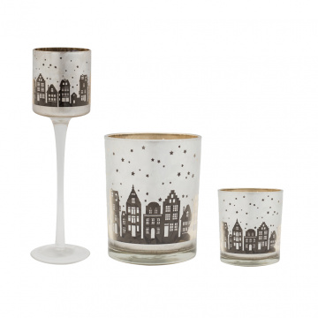 Описание Свічник скло келих НР платиновий Будиночки 7*25см