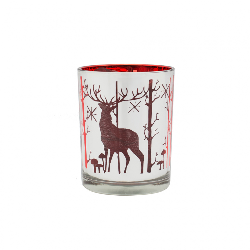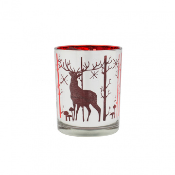 Описание Свічник скло НГ срібно-червоний Олень 10 * 12 см