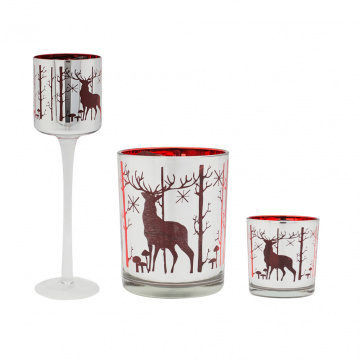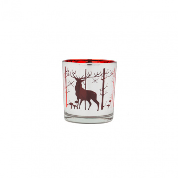 Описание Свічник скло НГ срібно-червоний Олень 7.3 * 8 см
