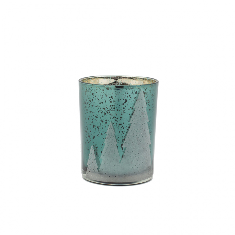 Описание Свічник скло НР сір-блакитний Ялинки 7.3 * 8 см