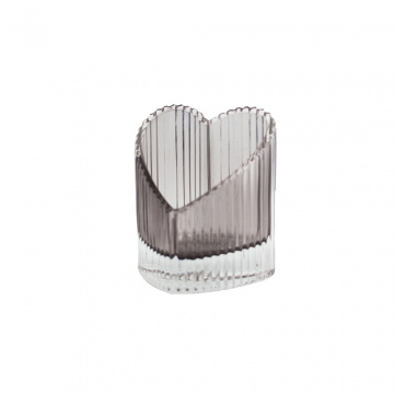 Вечером вступает в силу желание романтики. Подсвечник «Сердце» укрепляет интерес к новым ощущениям. Аксессуар производит впечатление о добротном качестве. Утолщенное стекло с рифлеными гранями актуально для повседневного и праздничного украшения. Серый оттенок создает приятную приглушенность в уголке любой комнаты. Захватывает внимание комбинация парных подсвечников на любой поверхности. Коллекция стеклянных подсвечников состоит из трендовых оттенков: красный, бордовый, синий, фуксия, серый, изумрудный. Соедините изделия разных цветов, чтобы удержать внимание на ярком акценте. Делайте вечера умиротворенным для эмоций. Держите под рукой свечи и стеклянный подсвечник. Располагайтесь к отдыху в обустроенном уюте.