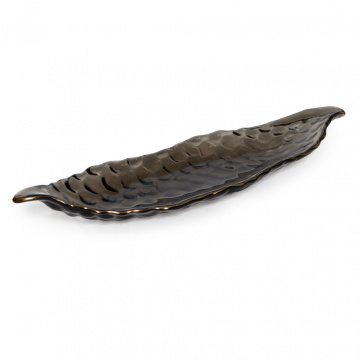 Описание Тарелка Листик черный з золотой каймой 37.5см