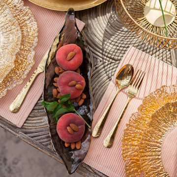 Блюдо «Листик» представлено в трендовых расцветках: малиновый, белый и черный цвета. Посуду с золотым декором не рекомендуется мыть в посудомоечной машине.