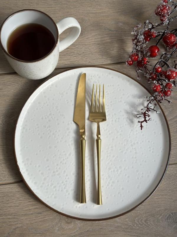 Добавьте стиль и элегантность вашему столу с тарелкой “Лава”. Белая обеденная тарелка сочетает в себе минимализм и природную текстуру, создавая эффектные акценты на вашем столе. Реактивная матовая глазурь с эффектом лавы придает каждой тарелке уникальный вид, превращая каждую сервировку в произведение искусства.