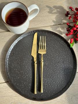 Добавьте нотку элегантности и таинственности в свою сервировку с тарелкой "Лава". Обеденная тарелка выполнена в насыщенном черном цвете с уникальным эффектом лава. Реактивная глазурь придает каждому изделию особый, неповторимый узор, делая каждую тарелку единственной в своём роде. Такая тарелка не только функциональна, но и станет стильным акцентом на вашем столе.