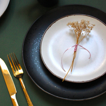 Посуда серии La Rosee Noir изготовлена из каменной керамики высокой плотности. Каждое изделие покрыто уникальным рисунком капелек прозрачной глазури и золотистой окантовкой. Тарелка выдерживает перепады температуры и предназначена для микроволновой печи, морозильной камеры, посудомоечной машины.