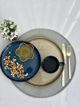 Эта тарелка привлекает внимание своей глянцевой реактивной глазурью, которая создает эффект живописных потеков и декоративных разводов на поверхности каждого экземпляра. Стильный песочно-желтый цвет прекрасно сочетается с любой сервировкой.