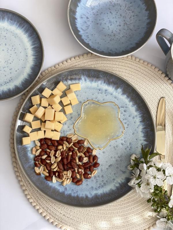 Уникальность. Тарелка покрыта особым видом глазури которая во время обжига формирует уникальные эффекты на керамической поверхности. Благодаря этому все тарелки получают уникальную не повторяющуюся расцветку.