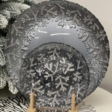 Описание Тарелка стекло Еловые ветки голубая 21см