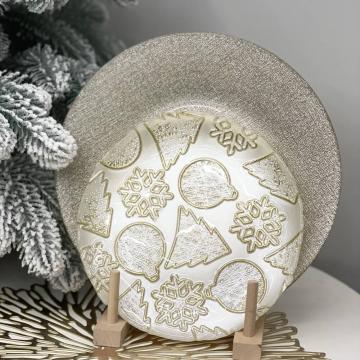 Описание Тарелка стеклянная Glitter белая с золотым рисунком 21см