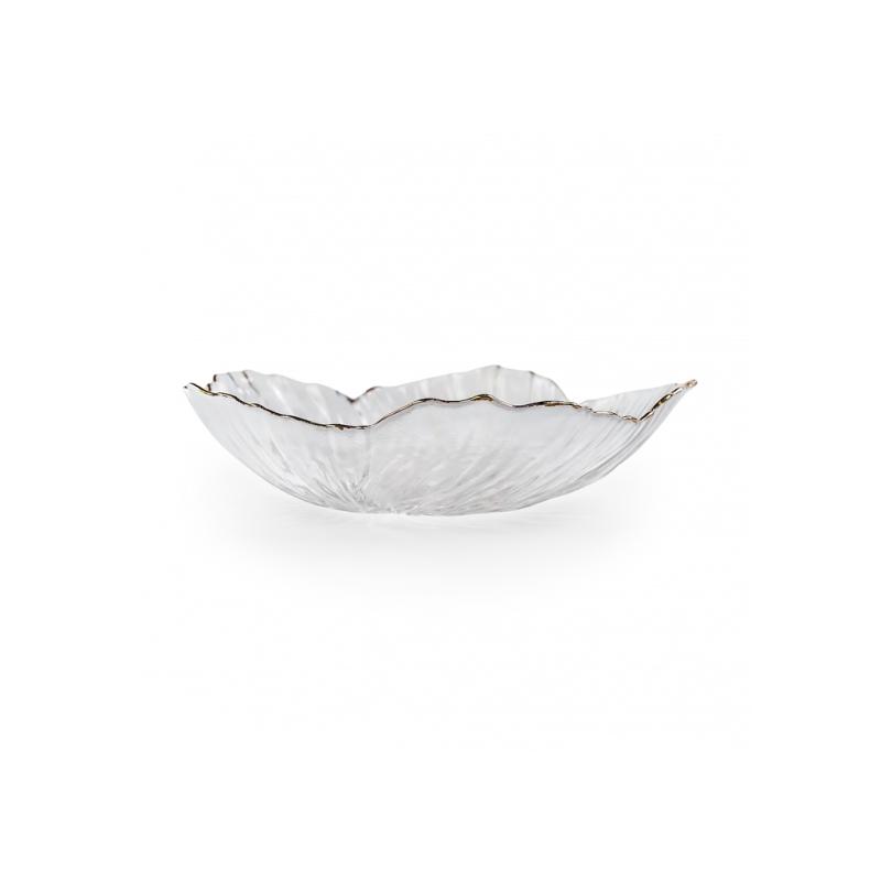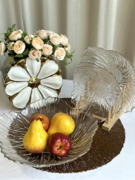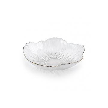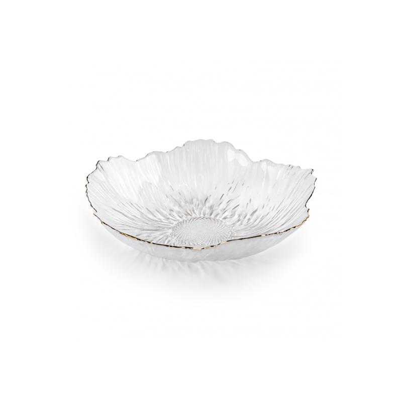 Стеклянное блюдо "Мак" – изысканная часть сервировки! Блюдо "Мак" – это воплощение элегантности и утонченного вкуса. Прозрачное стекло с изящной текстурой лепестков и золотая окантовка делают блюдо идеальным акцентом для праздничного стола и особых случаев. Подходит для подачи фруктов, десертов, закусок, превращая каждое блюдо в произведение искусства.