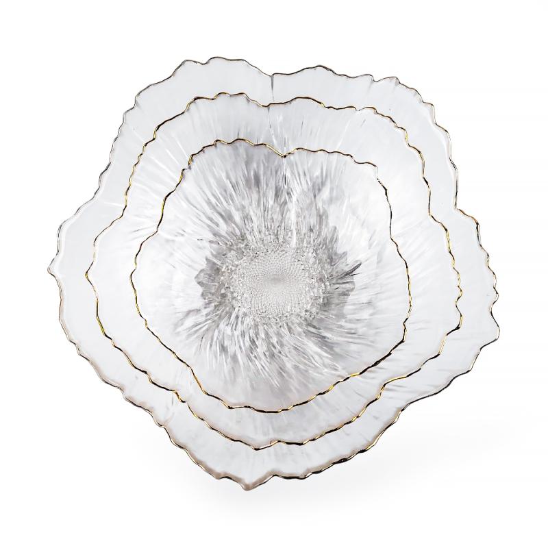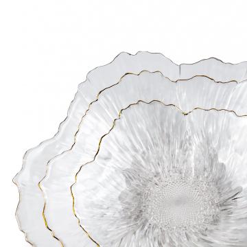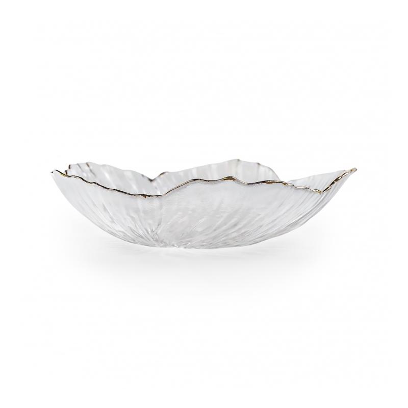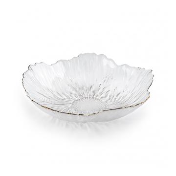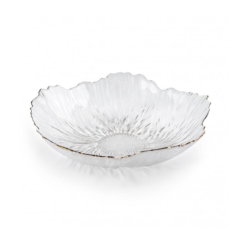 Стеклянное блюдо "Мак" – изысканная часть сервировки! Блюдо "Мак" – это воплощение элегантности и утонченного вкуса. Прозрачное стекло с изящной текстурой лепестков и золотая окантовка делают блюдо идеальным акцентом для праздничного стола и особых случаев. Подходит для подачи фруктов, десертов, закусок, превращая каждое блюдо в произведение искусства.
