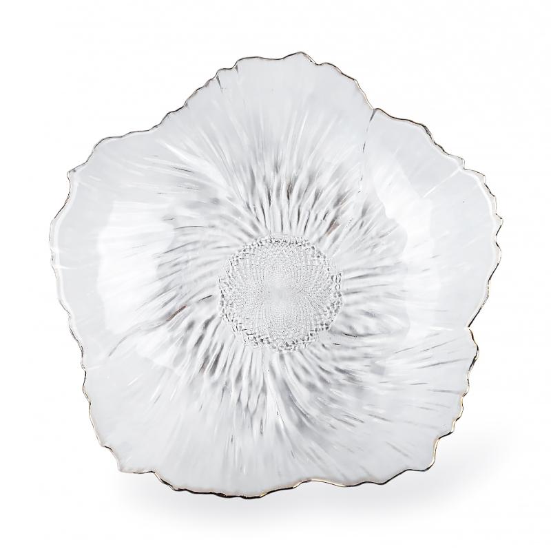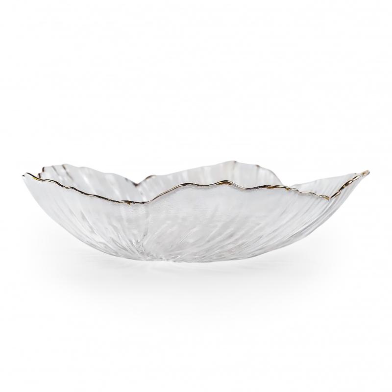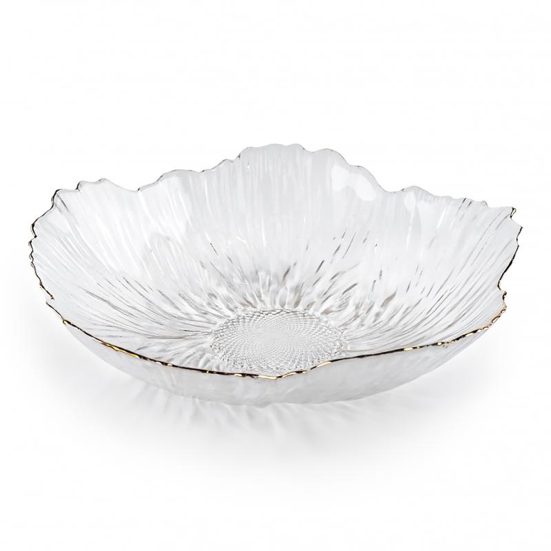 Стеклянное блюдо "Мак" – изысканная часть сервировки! Блюдо "Мак" – это воплощение элегантности и утонченного вкуса. Прозрачное стекло с изящной текстурой лепестков и золотая окантовка делают блюдо идеальным акцентом для праздничного стола и особых случаев. Подходит для подачи фруктов, десертов, закусок, превращая каждое блюдо в произведение искусства.