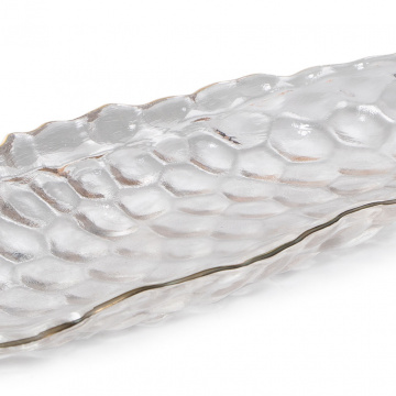 Декоративная сервировка стола – доступное искусство на каждый день. Стеклянное блюдо «Листочек» предоставит услугу для подачи фруктов, печенья, конфет. Само блюдо отчетливо как украшение кухни, гостиной, прихожей. Посуда интересна за счет рельефных узоров и деликатной окантовки. Прозрачное стекло выделяется благородным акцентом на поверхности любой мебели.