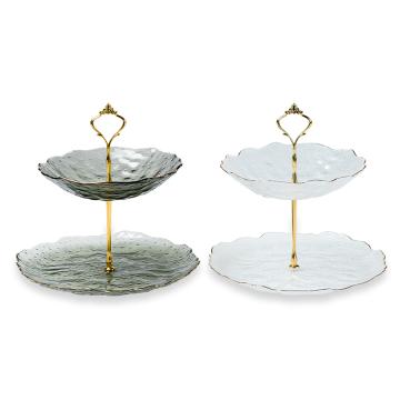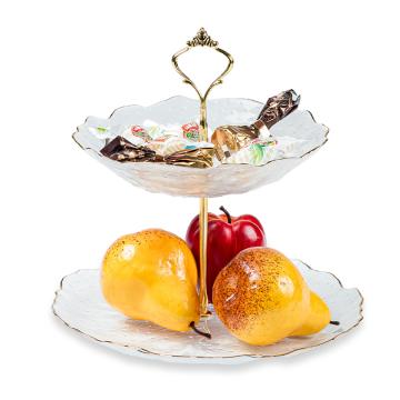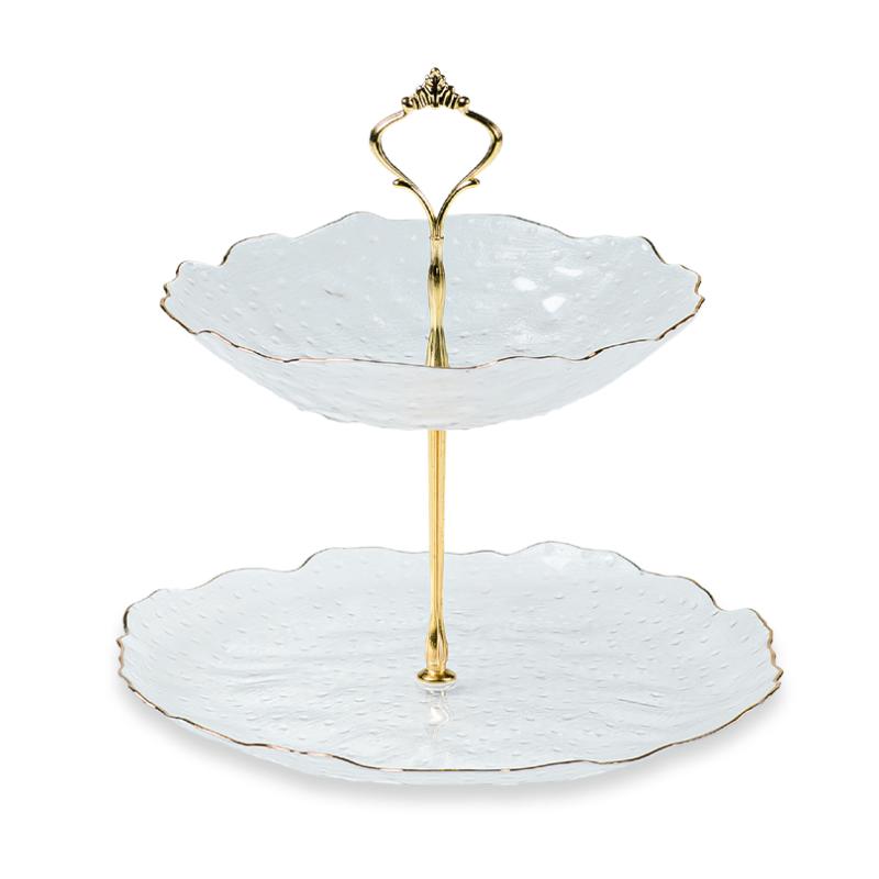 Стеклянная тортовница с угощениями – необходимый элемент сервировки любого праздника. На тарелках вмещаются фрукты, конфеты, пирожные, кексы, печенье. Блюда в форме цветка с золотым ободком выглядят нарядно и презентабельно. Металлический стержень делает конструкцию удобной и практичной. Тортовница служит витриной выпечки в пекарнях, кафе, ресторанах.