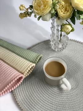 Салфетка под тарелку круглая кремовая Помпон 38см