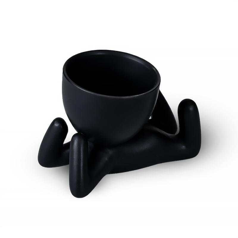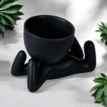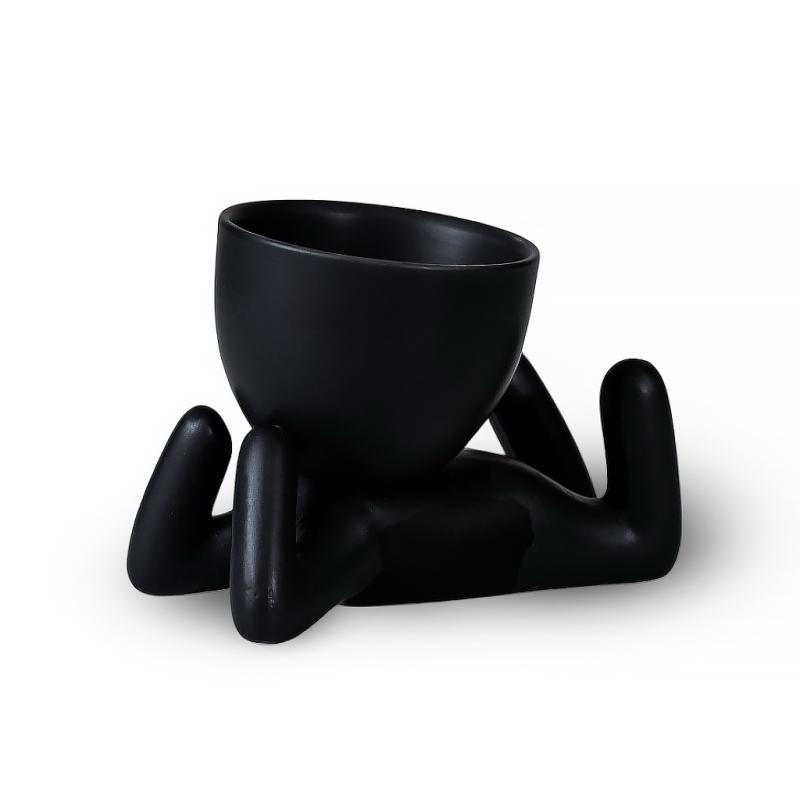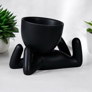 Описание Цветочный горшок Человечек лежачий черный керамика 8,2х7х12 см