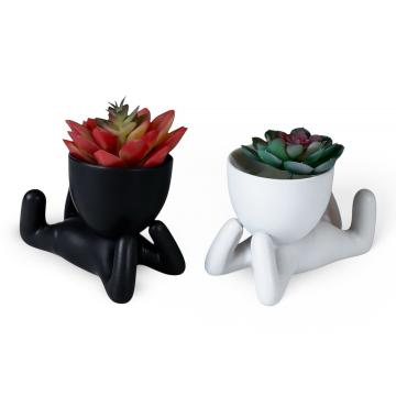 Цветочный горшок Человечек белый керамика 14х7х9 см