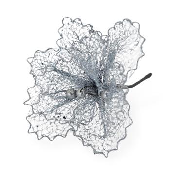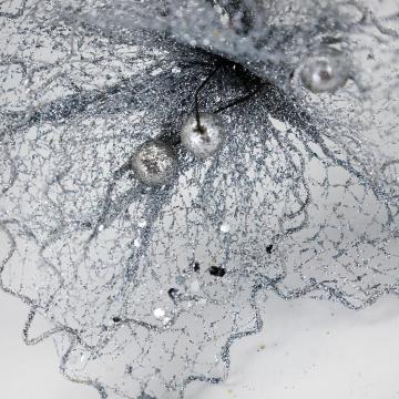 Цветок «Паутинка»— изящный цветок, будто сотканный из морозных нитей. Ажурные лепестки с деликатным мерцанием и жемчужными тычинками ловят свет и придают композициям лёгкое зимнее сияние. Закрепите цветок на ёлке, вплетите в венок, поставьте у камина или в сервировку — и декор станет воздушнее и благороднее, наполняя дом атмосферой Нового года и тёплого Рождества.