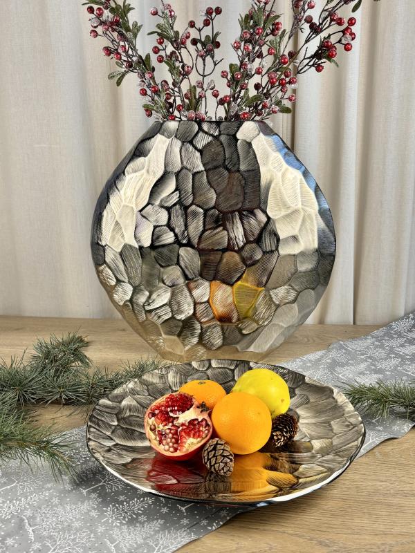 Описание Ваза алюминиевая Чеканка серебро 42,5 см