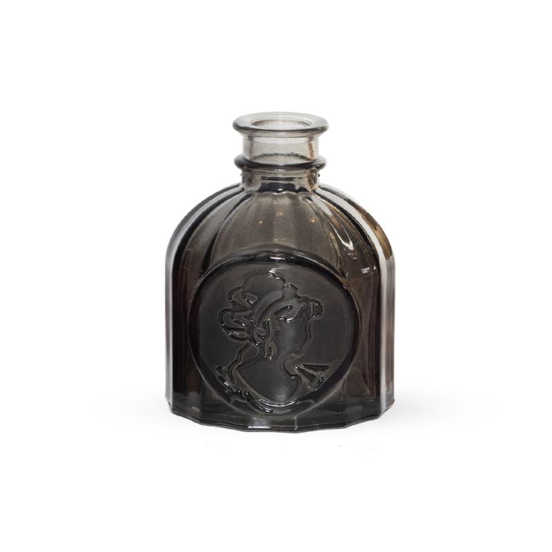 Описание Ваза Бутылка с медальоном стеклянная серая 8,3х6,7 см
