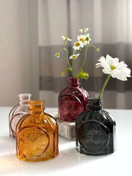 Ваза Бутылка с медальоном стеклянная розовая 8,3х6,7 см