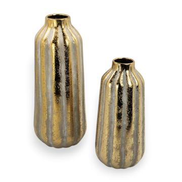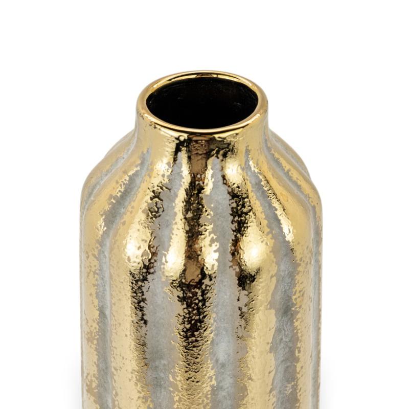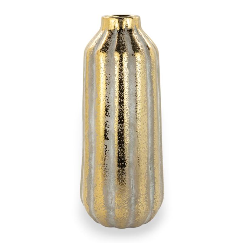 Golden Columns сразу притягивает взгляд теплым золотым сиянием и выразительным рельефом. Вытянутая форма и вертикальные линии делают эту большую керамическую вазу особенно стройной, заметной и эффектной в интерьере. Такая напольная ваза смотрится нарядно, стильно и при этом не перегружает пространство, а наоборот — помогает красиво его заполнить и расставить выразительные акценты.