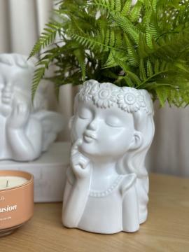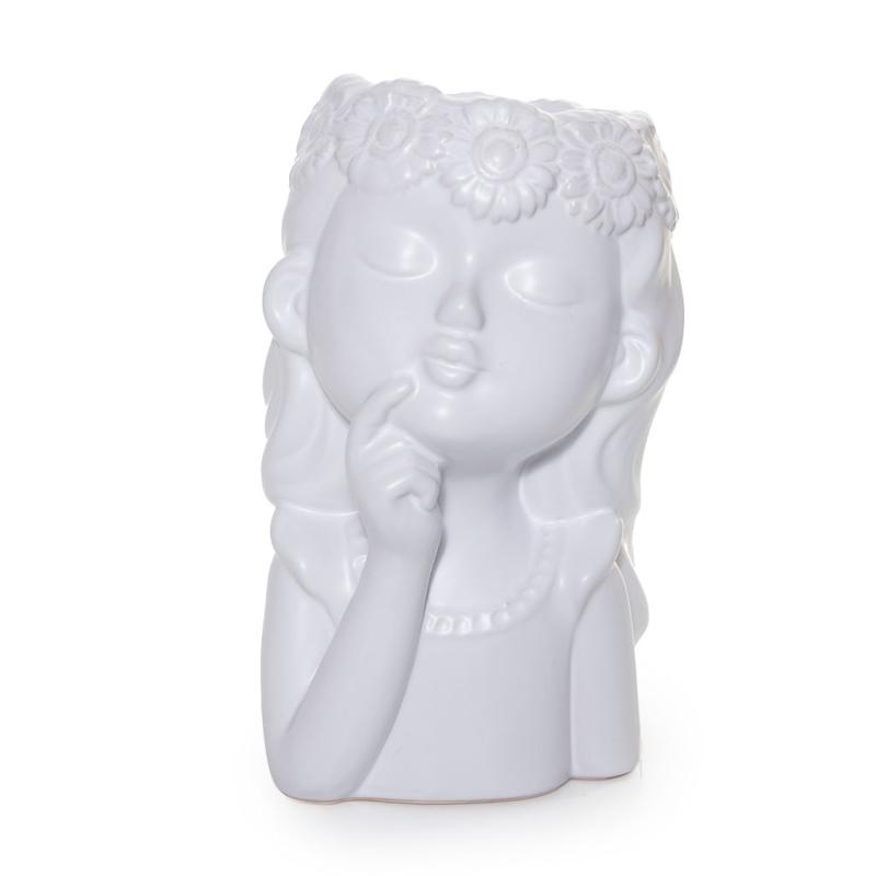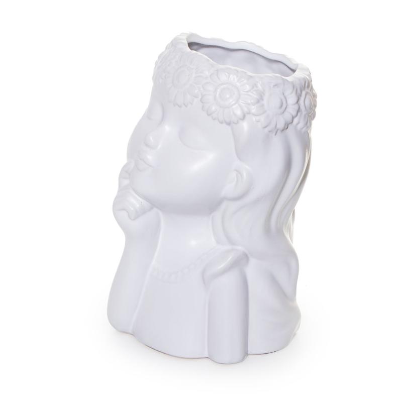 Описание Ваза керамическая Девочка с венком белая 21х12см