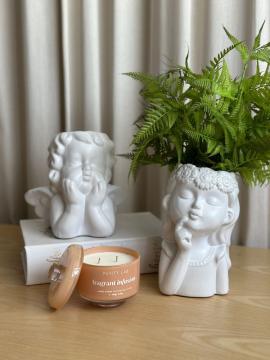 Очаровательным элементом декора, который добавит особое настроение в ваш интерьер станет керамическая ваза в виде девочки с венком на голове. Выполненная в мягких белых и бежевых оттенках, эта ваза излучает теплоту и гармонию, а её форма, олицетворяющая невинность и красоту, станет истинным украшением вашего пространства. Ваза прекрасно подходит для живых, сухих цветов или как самостоятельный декоративный элемент.