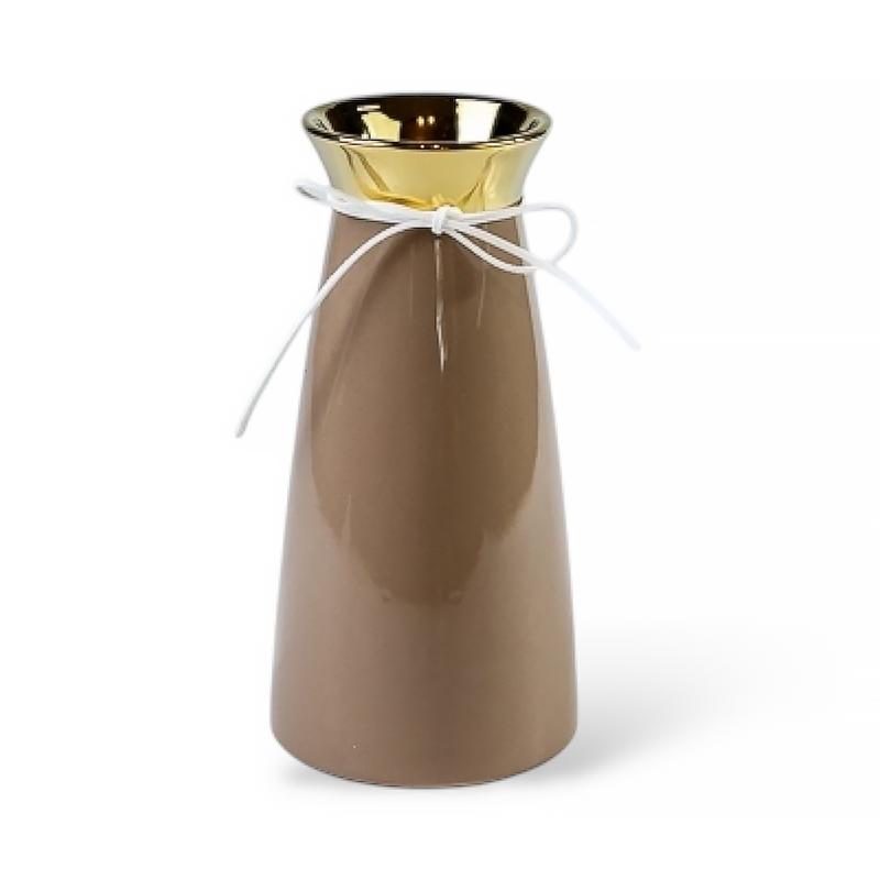 Ваза керамическая Гармония мокко с золотым верхом 17 см